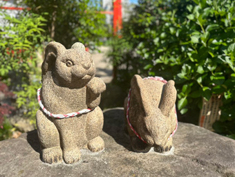 大正時代の貴重なうさぎの石像です。開運招福、病気平癒の「招きうさぎさん」を撫でてご利益を感じてください。